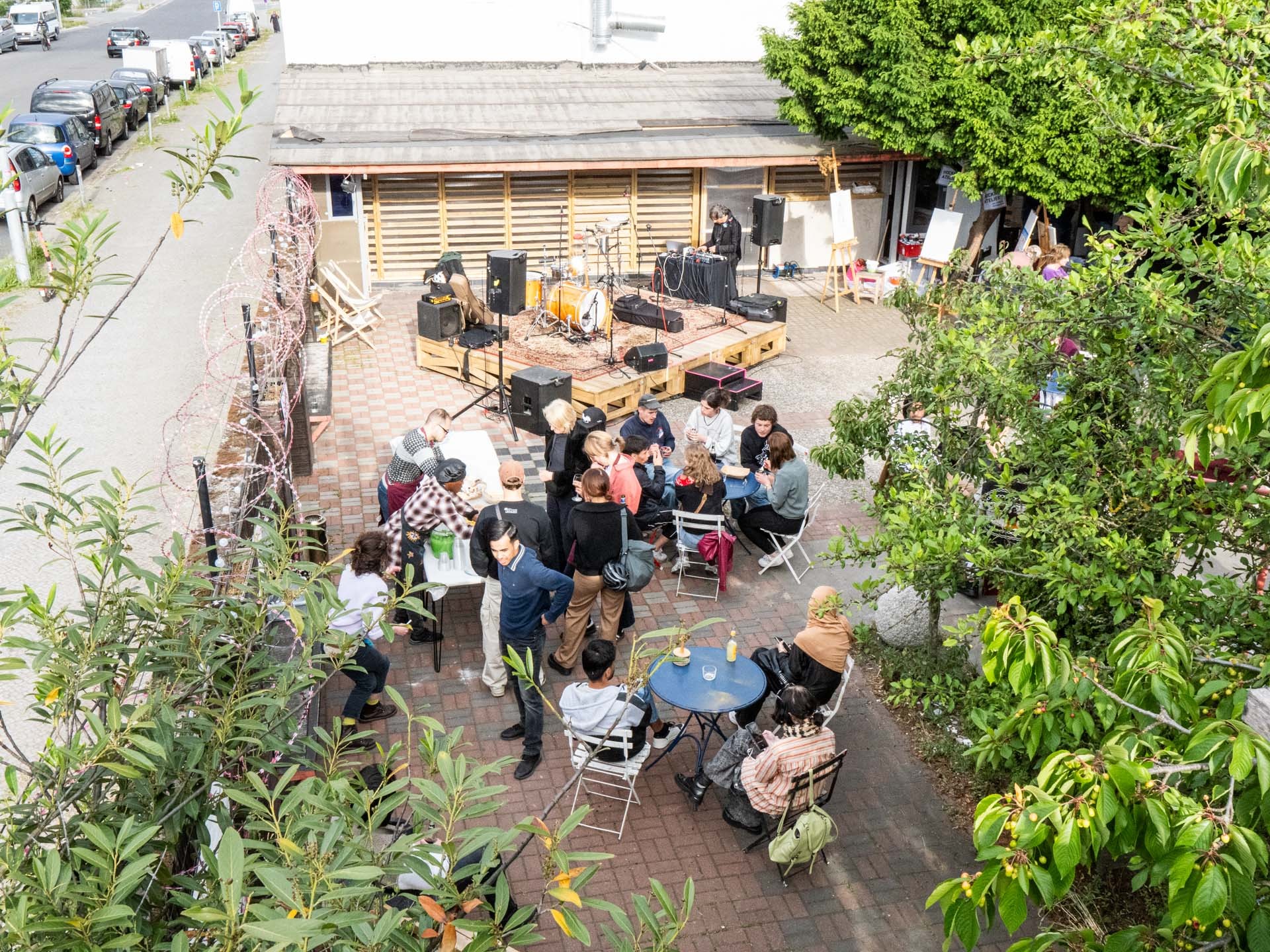 Falscher Fisch is a place where people work, learn, think and celebrate. Experimental spatial configurations, concerts and events in the enchanting setting of the beer garden, ballroom and three large workshops make it a place for community and forward thinking.