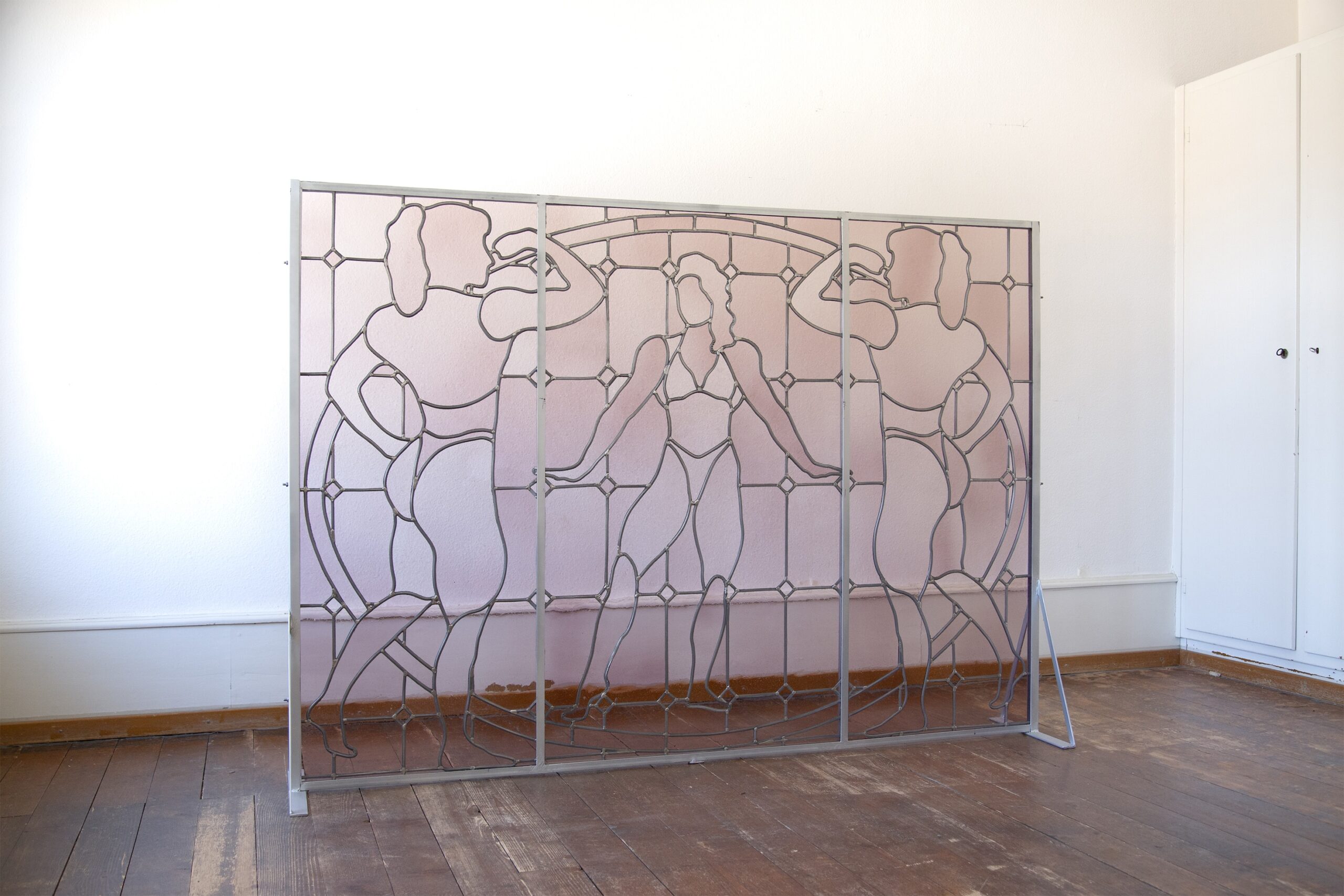 Santomé kombiniert traditionelle Techniken wie Aluminiumprägung, Wandzeichnung und Bleiglas-Technik mit fiktionalen und narrativen Elementen. Ihre Arbeiten bringen widersprüchliche, kraftvolle Körperbilder hervor, die sich der Einordnung entziehen. In einer großformatigen Graphitzeichnung und einer Reihe von Aluminium-Reliefs treffen Bildfragmente, Erinnerungen und Materialien aufeinander. Die Ausstellung reflektiert Ursprungsmythen, Ungehorsam, Schuld und die Rolle von Bildern bei der Reproduktion oder Auflösung von Machtverhältnissen.