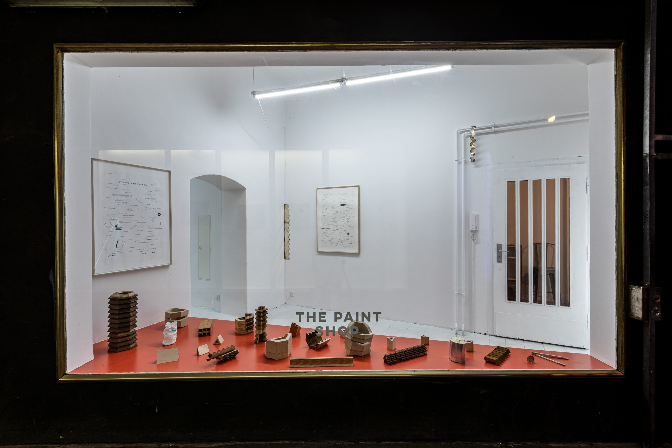 Der Paint Shop ist eine frisch eröffnete Galerie in Berlin-Kreuzberg, der aus dem Rahmen fällt: Direkt gegenüber von der Hasenheide gelegen, bietet der Raum durch seine ungewöhnlich geschnittenen Räumlichkeiten einen besonderen Ort für etablierte, aber auch junge aufstrebende Künstler*innen. Ein typisches Berliner Schaufenster eröffnet den Blick in den Kunstraum von der Straße her: Um hineinzugelangen, klingelt man einfach an der Haustür bei ›Paint Shop‹. Der Raum läuft triangelförmig auf den ersten Hinterhof zu und ermöglicht durch die bodentiefen Fenster beim Gang durch die Hofeinfahrt eine neue Perspektive und andere Blickwinkel auf gezeigte Malereien, Zeichnungen und Skulpturen. Die auf der anderen Seite der Hofeinfahrt eingelassenen Schaukästen, die überall in Berlin seit den 1920er-Jahren zu finden sind, werden ebenfalls bespielt.